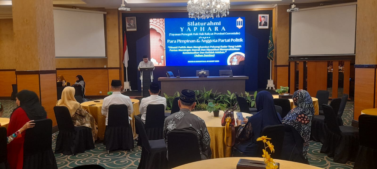 Jiwa politisi yang merangkul politisi lintas partai dimiliki Adhan Dambea itu, terlihat pada kegiatan buka puasa bersama digelar YAPHARA (Yayasan Permbela Hak-Hak Rakyat Provinsi Gorontalo), Kamis (05/03/2026) di Ballroom Grand Q Hotel Gorontalo. Dihadiri langsung sejumlah pimpinan dan anggota lintas partai politik di Gorontalo.
