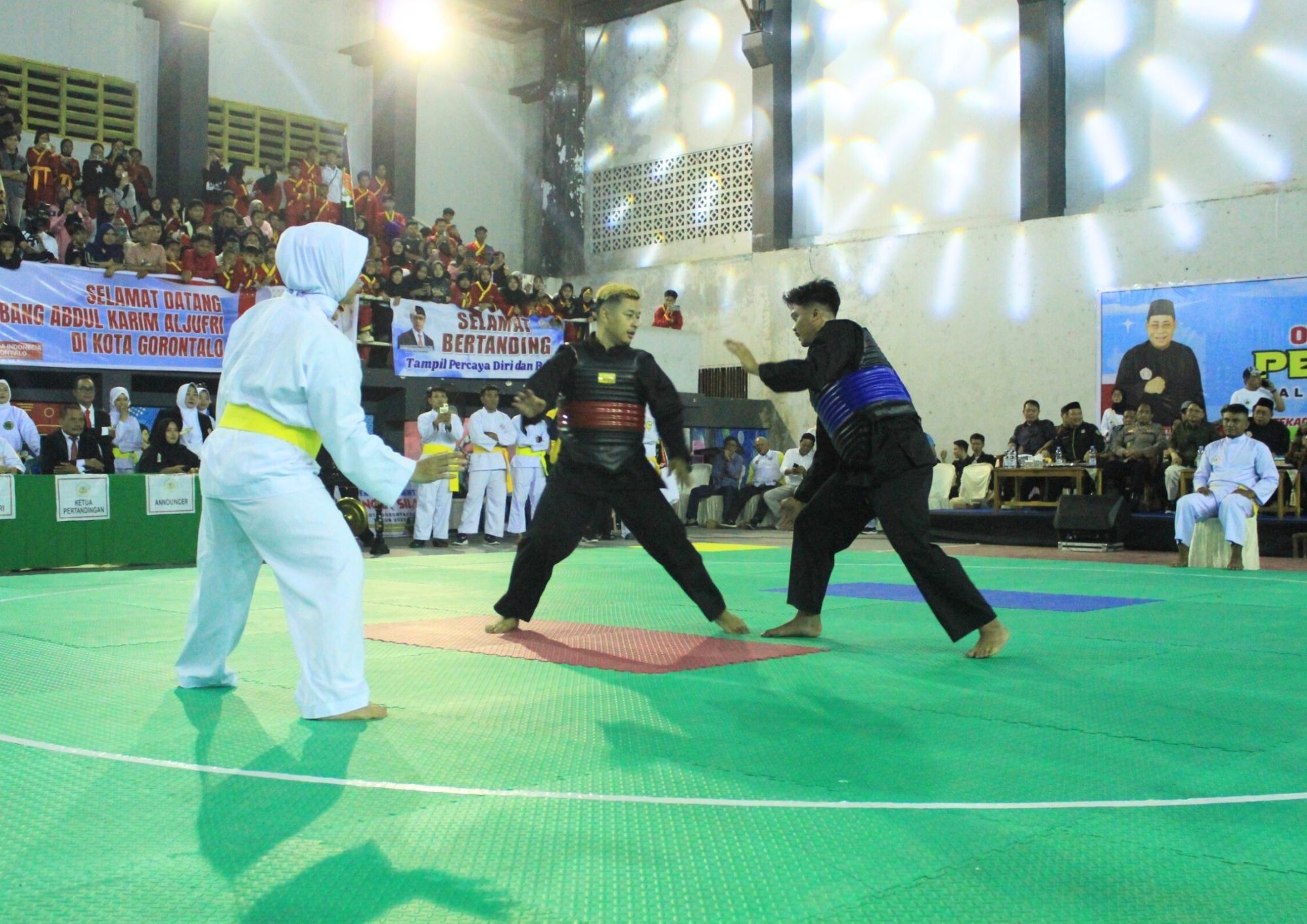 HABARI.ID, KOTA GORONTALO I Hanifan Yudani Kusuma, atlet pencak silat juara 1 Asian Games tanun 2018 dan Paksi Ghifari Nugrana, atlet juara 1 Asean University Games Thailand tahun 2022, menjadi tamu spesial pada pembukaan open turnamen Wali Kota Cup Pencak Silat tahun 2025 di Kota Gorontalo, Senin (24/11/2025).