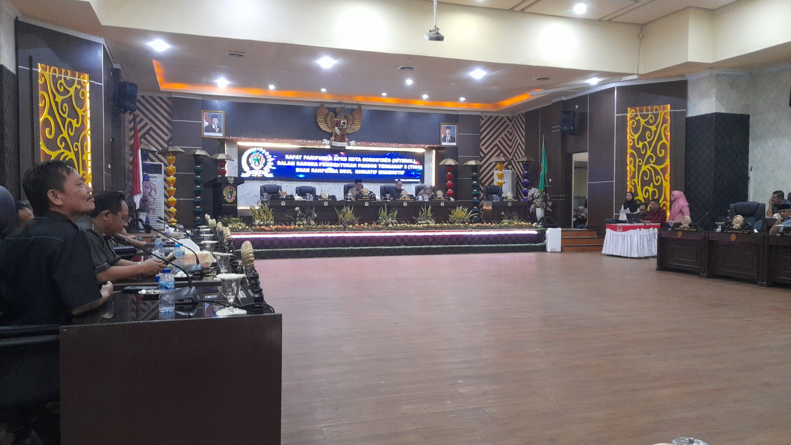 Rapat paripurna internal DPRD Kota Gorontalo, dalam rangka pembentukan Pansus terhadap tiga Ranperda usul inisiatif eksekutif ini dipimpin tiga pimpina DPRD termasuk langsung Ketua DPRD Kota Gorontalo, Irwan Hunawa.