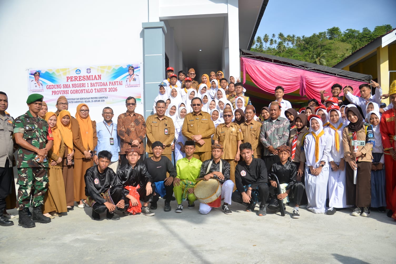 HABARI.ID, PEMPROV | Gubernur Gorontalo Gusnar Ismail meresmikan revitalisasi gedung dan fasilitas di tiga sekolah menengah atas diantaranya SMA Negeri 1 Batudaa Pantai, SMK Negeri Model Gorontalo dan SMA Negeri 1 Tilongkabila, Selasa (20/1/2026), yang dibangun dengan anggaran sekitar Rp 1,3 miliar. Peresmian ditandai dengan penandatanganan prasasti dan pengguntingan pita.