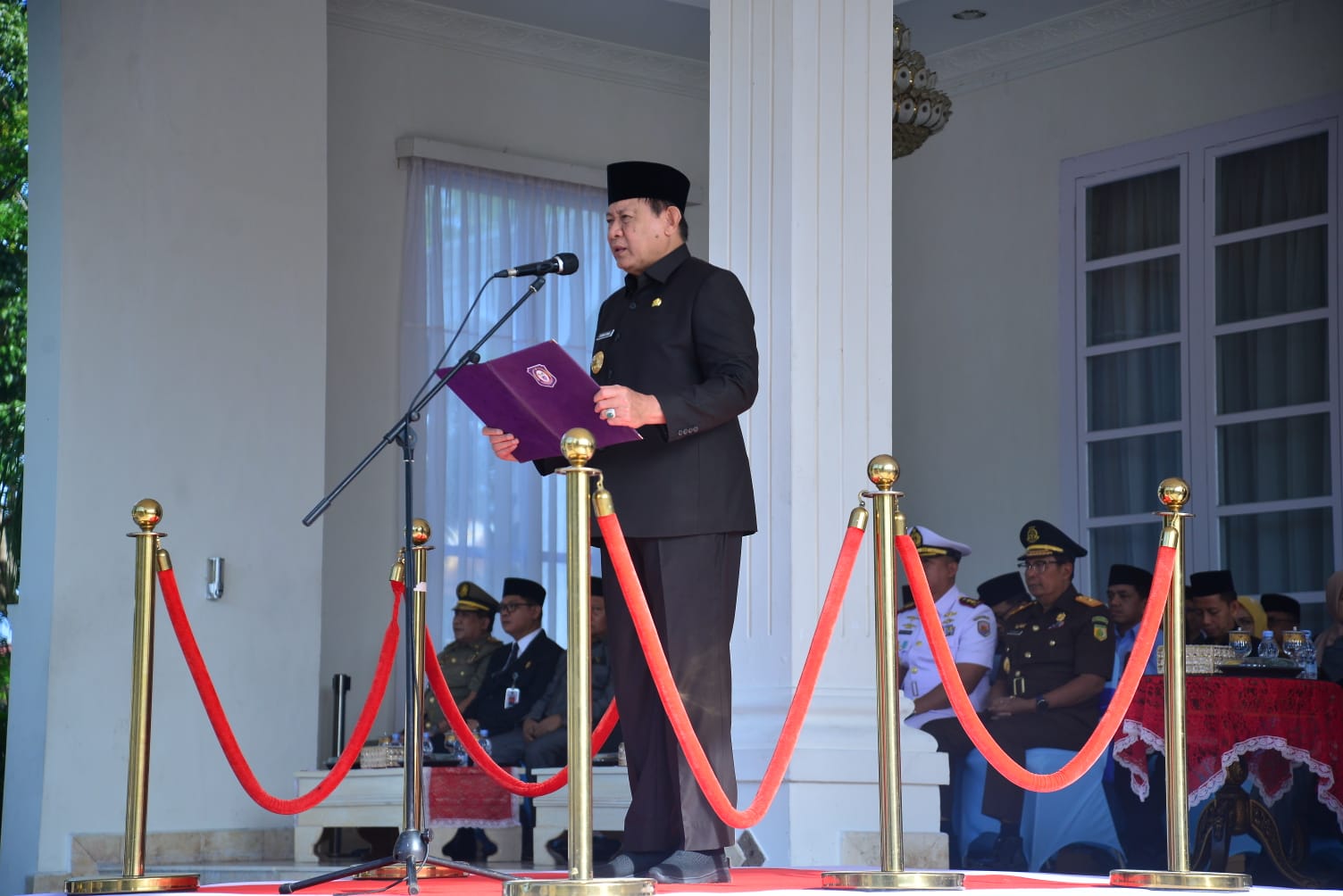HABARI.ID, PEMPROV | Gubernur Gorontalo Gusnar Ismail bertindak sebagai Inspektur upacara pada peringatan hari kesaktian Pancasila tingkat Provinsi Gorontalo di halaman rumah jabatan Gubernur, Rabu (1/10/2025). Upacara turut dihadiri Wakil Gubernur Idah Syahidah bersama jajaran Forkopimda dan pimpinan OPD Pemprov.