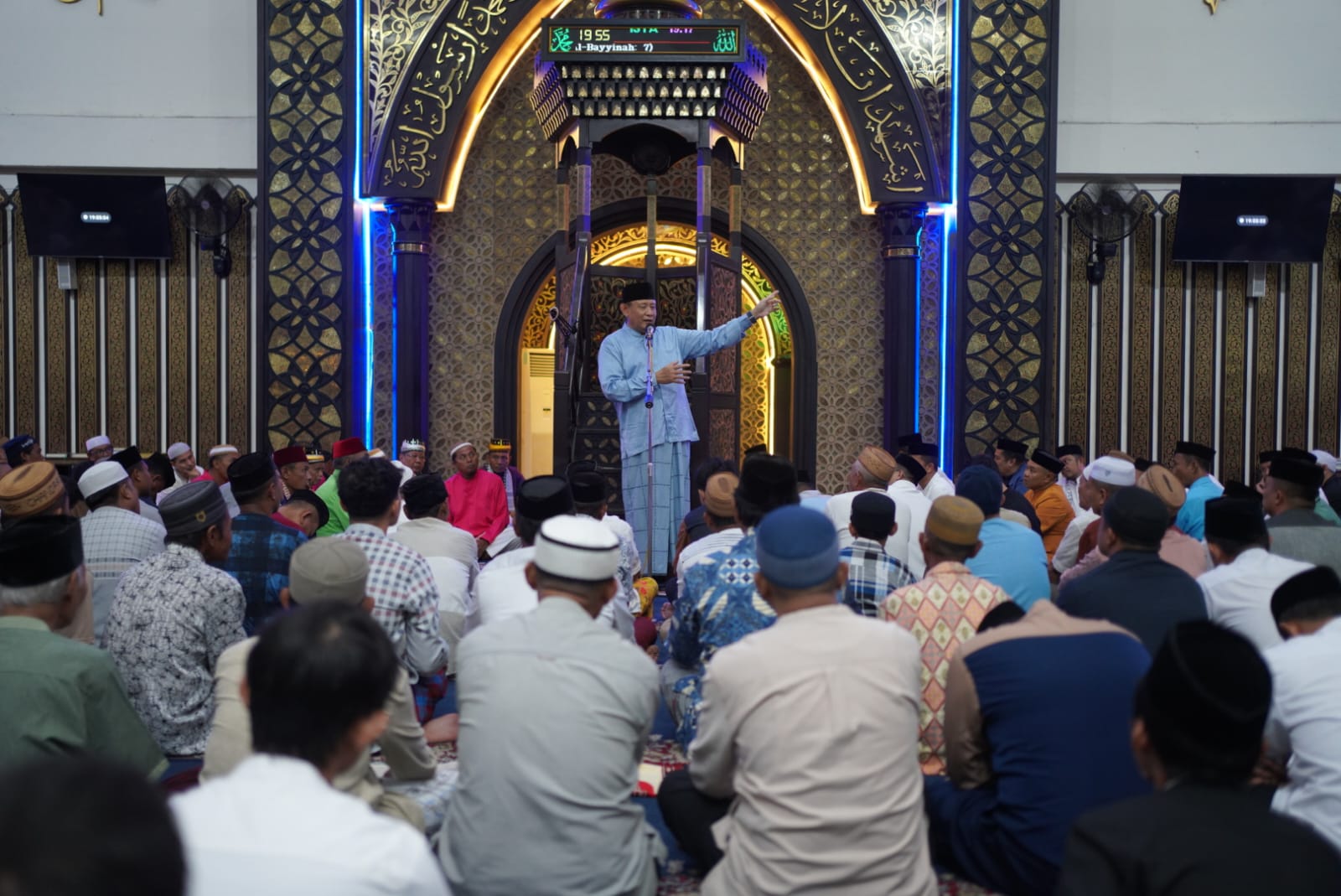 “Saya mengajak kita semua menjalani bulan ramadhan dengan hati yang senang, mesjid ini cerminan dari falsafah adat bersendikan syara dan syara bersendikan kitabullah”. Ujar Gusnar dalam sambutannya sebelum melaksanakan tarwih berjamaah di Mesjid Agung Baiturrahman, Limboto, Sabtu (21/02/2026).