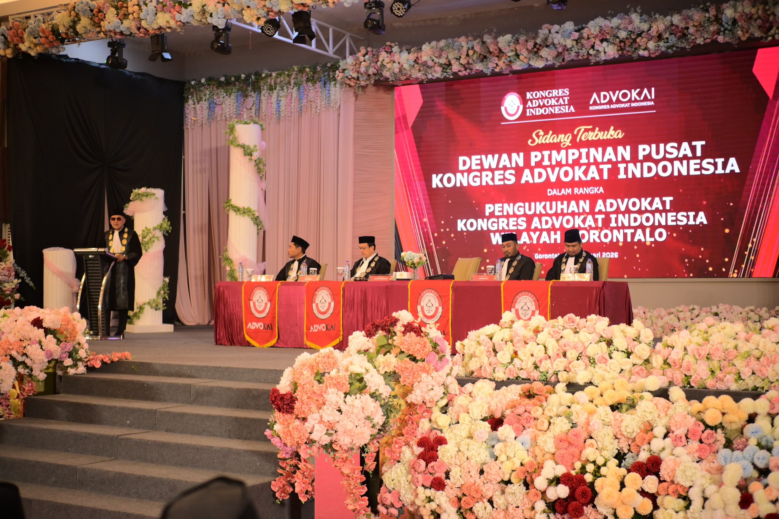 HABARI.ID I Kongres Advokat Indonesia atau KAI, kembali melahirkan advokat-advokat profesional, ditandai dengan pengukuhan advokat KAI wilayah Gorontalo Kamis (26/02/2026) di Gedung Hulonthalo Ball Room.