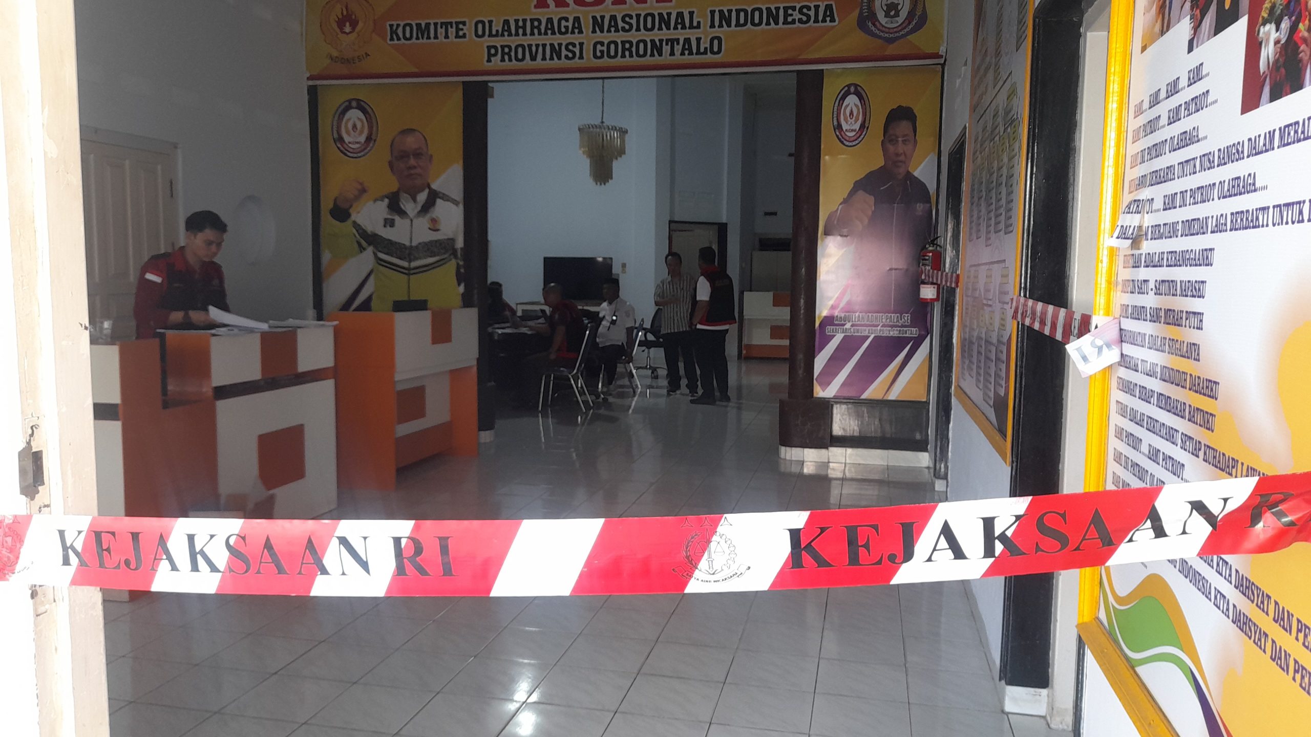 HABARI.ID, HUKUM I Kejaksaan Tinggi Gorontalo Rabu (08/10/2025) menggeleda Kantor KONI Provinsi Gorontalo. Ditandai dengan garis Kejaksaan Line, terpasang di gedung dan dua ruangan Kantor KONI Provinsi Gorontalo.