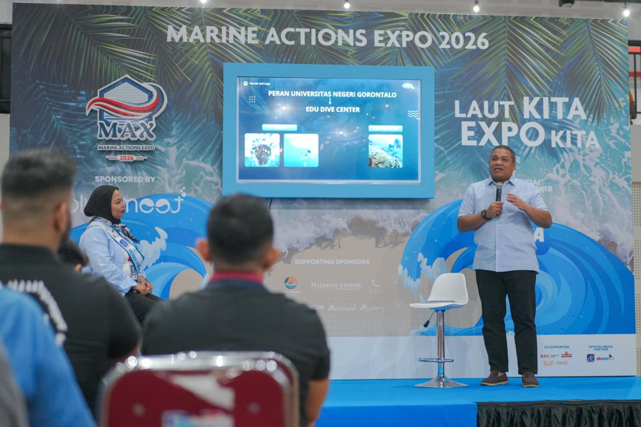 HABARI.ID, KAMPUS I Rektor Universitas Negeri Gorontalo Prof. Dr. Ir. Eduart Wolok, S.T., M.T menjadi pembicara pada Marine Action Expo yang digelar di Balai Sarbini, 24-26 April 2026. MAX merupakan salah satu pameran terbesar di Indonesia yang semuanya berisi informasi potensi bawah laut dan wisatanya.