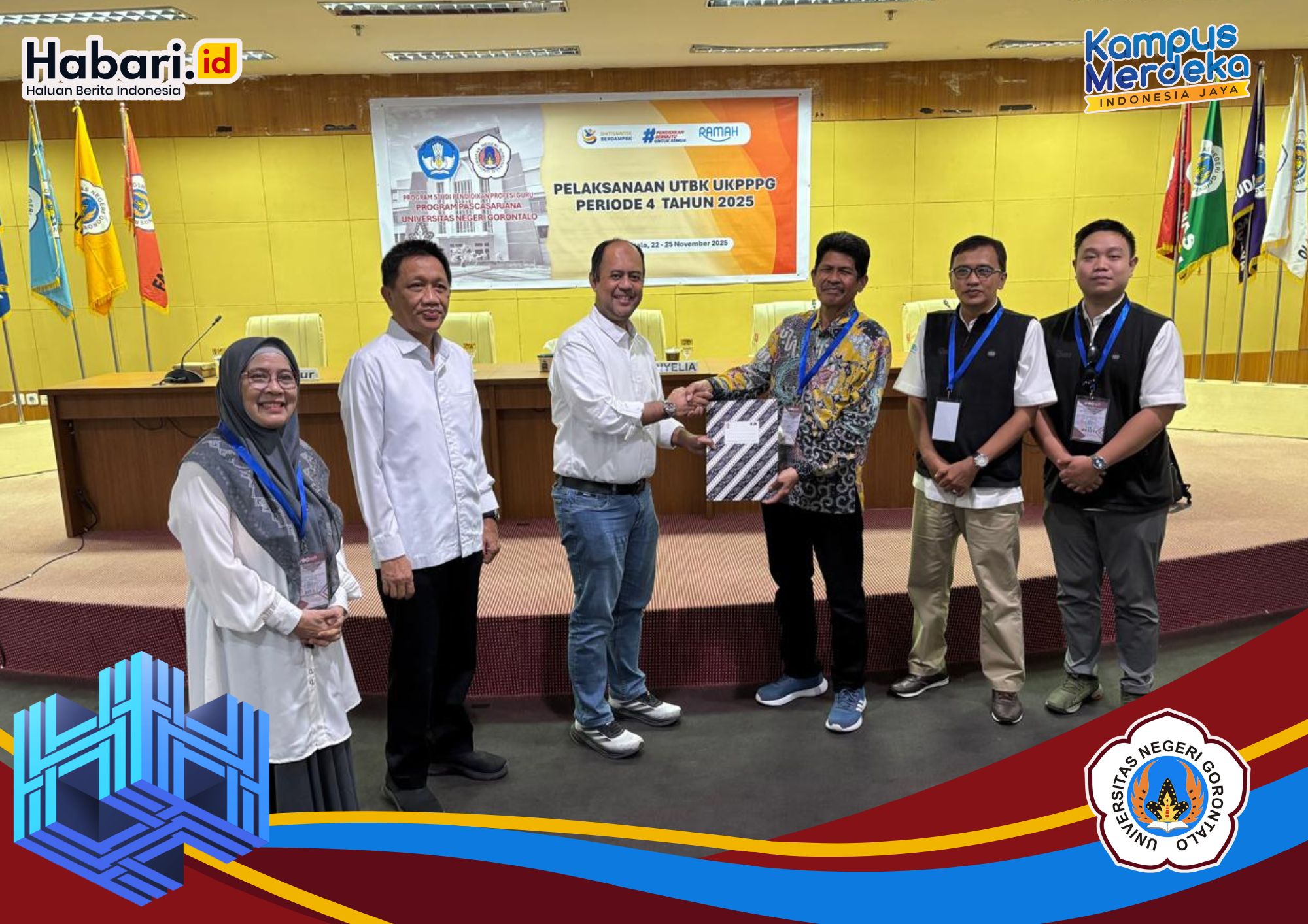 HABARI.ID, KAMPUS I Universitas Negeri Gorontalo (UNG) melalui Program Studi Pendidikan Profesi Guru, kembali sukses menyelenggarakan Ujian Tulis Berbasis Komputer Uji Kompetensi Pengetahuan dan Profesional Guru (UTBK UKPPPG) bagi Guru Tertentu Periode 4 Tahun 2025. Kegiatan ini berlangsung selama empat hari, mulai 22 hingga 25 November 2025, dan dipusatkan di Aula Lantai 4 Gedung Rektorat UNG.