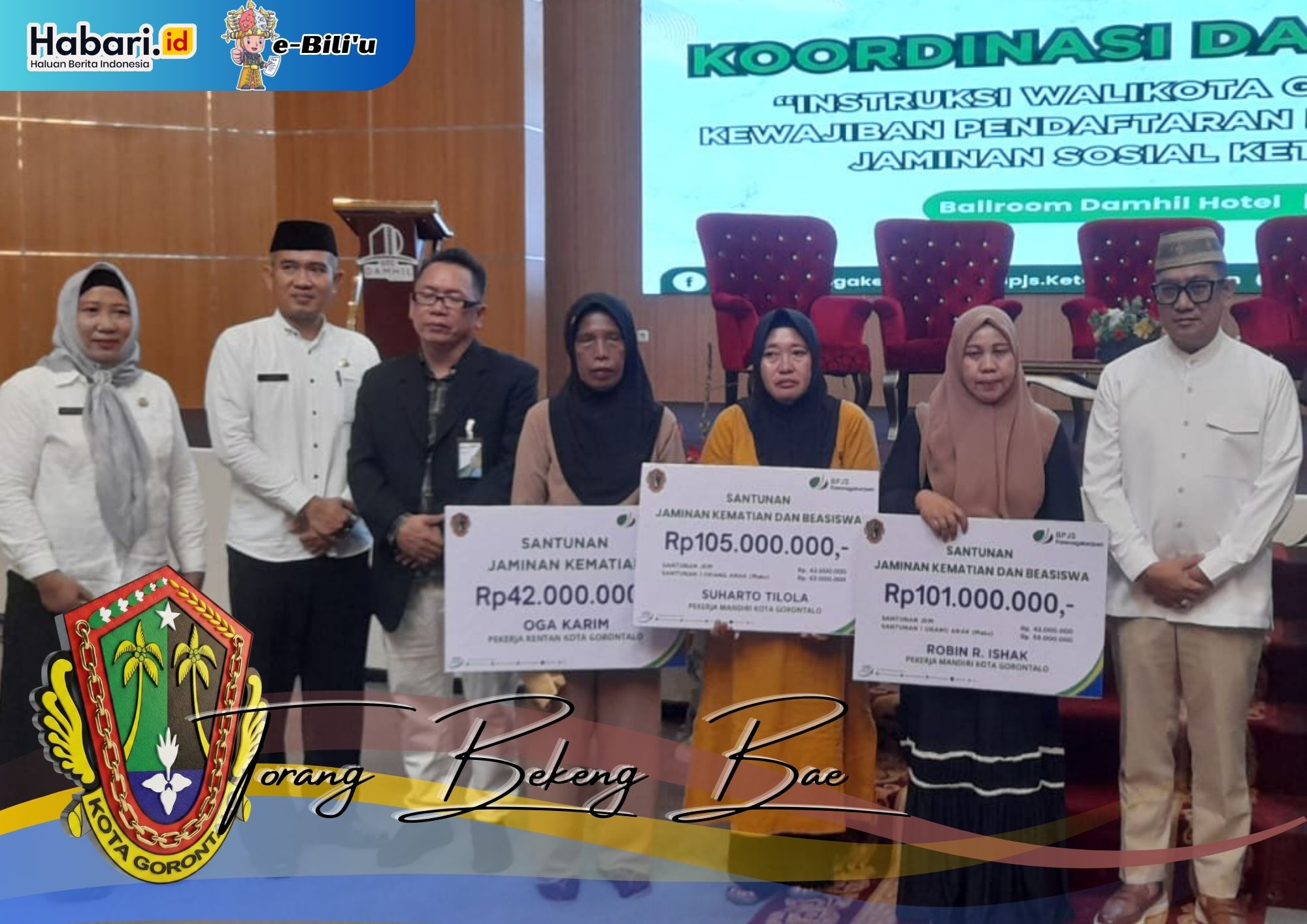 Diketahui di tengah pelaksanaan kegiatan tersebut, juga dirangkaikan dengan penyerahan santunan jaminan kepada peserta BPJS Ketenagakerjaan yang meninggal dunia, dilakukan Wakil Wali Kota Gorontalo Indra Gobel. Santunan jaminan kematian satu penerima manfaat ahli waris dan dua santunan jaminan kematian serta beasiswa untuk dua ahli waris.(bm/habari.id).